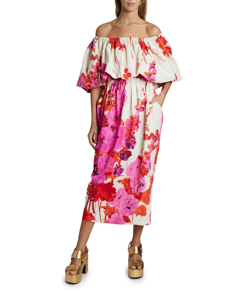 2. Dries Van Noten “ Vestido floral de manga comprida para fora do ombro Dayna”
